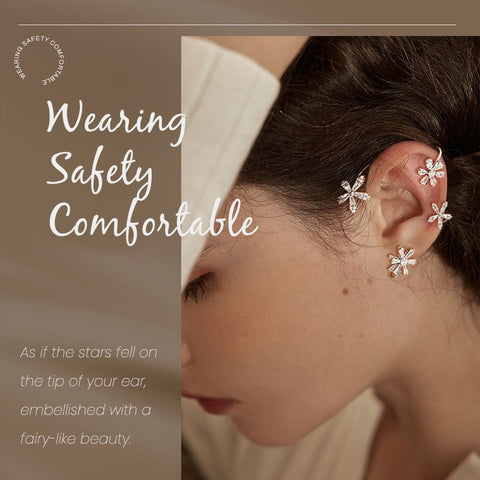 De særlige blomsterformede ørekroge af legering er allergivenlige og bly- og nikkelfri. De er nemme at bære og justere og kan bæres hele dagen uden ubehag.