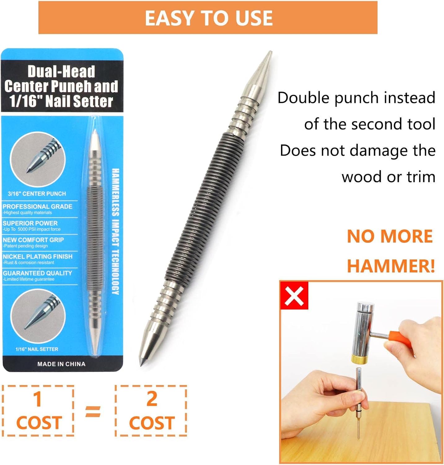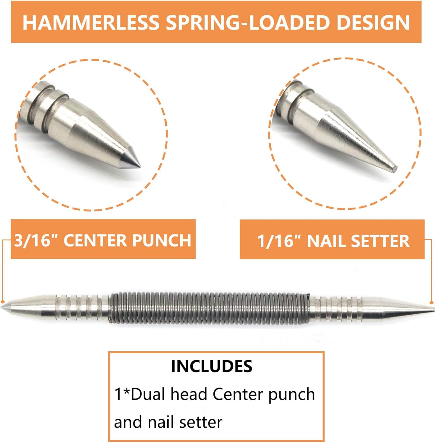 Almindelige Anvendelser: Denne dyknagle med dobbelthoved er designet til hurtigt og effektivt at forsænke dykkere i træoverflader. Designet med dobbelthoved har de mest populære størrelser til liste- og finisharbejde, med et 1/8-tommers hoved til større søm og et 3/32-tommers hoved til mindre stifter.