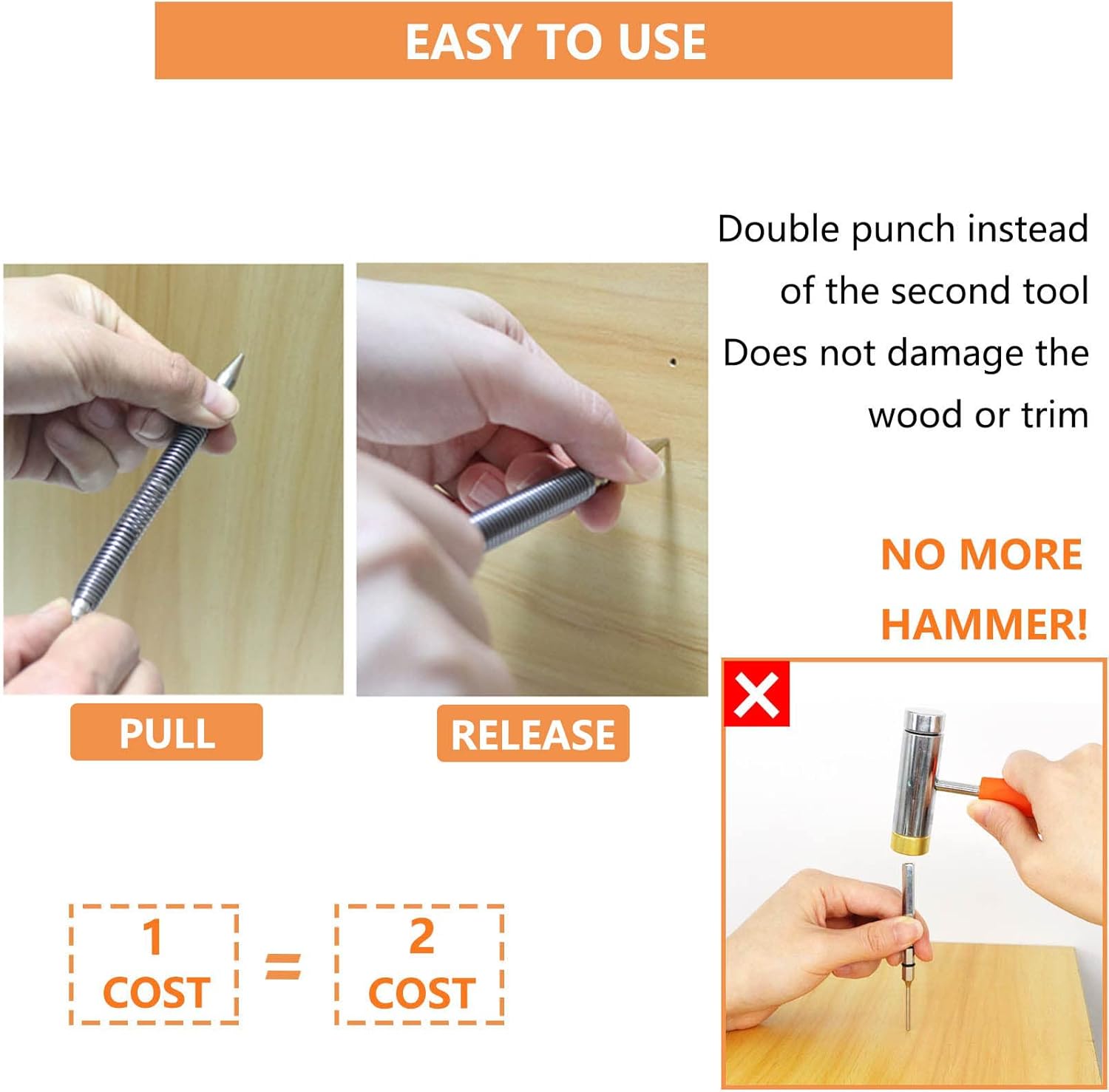 Let at Bruge: Fjederbelastet værktøj. Placer blot den ene spids på arbejdsemnet, træk den anden tilbage, og slip. Slut med at hamre, og den passer nemt i dit værktøjsbælte eller din lomme. Ideel til liste- og profilarbejde, hvor præcision og kontrol er nødvendigt, samt på trange steder.