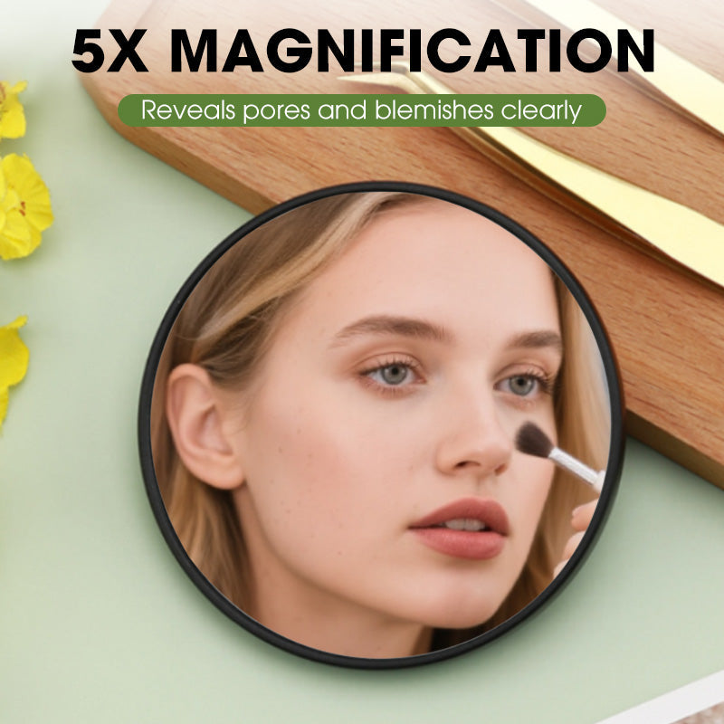 PRECYZYJNE OGLĄDANIE: To lustro powiększające 5-krotnie pozwala dostrzec pory, drobne włoski i niedoskonałości, dzięki czemu idealnie nadaje się do precyzyjnego nakładania makijażu lub usuwania trądziku. W przeciwieństwie do zwykłego lustra, to powiększające lustro zapewnia wyraźniejszy obraz, im bliżej twarzy się je trzyma.