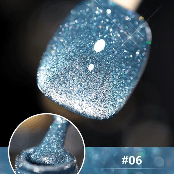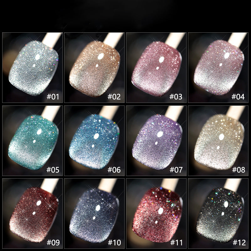 Cat eye gel nagellack, glitter holografiskt nagellack, reflekterande genomskinlig UV gel nagelkonst