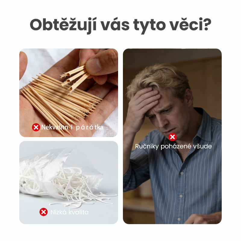 EGY ÉRINTÉSES ADAGOLÁS – A tartóval egyszerű mozdulattal könnyedén előveheti a friss fogselymet. Ez a higiénikus, érintésmentes kialakítás azt jelenti, hogy utazás közben is könnyedén, gond nélkül és rendetlenség nélkül ápolhatja szájhigiéniáját.