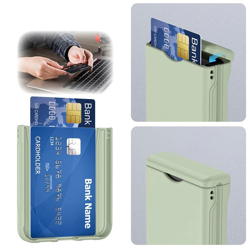 INBYGGT KORTFACK: Det skyddande telefonfodralet har ett inbyggt kortfack som rymmer två kort, vilket ger en bekväm och snygg lösning för att bära dina viktiga kort med din telefon.