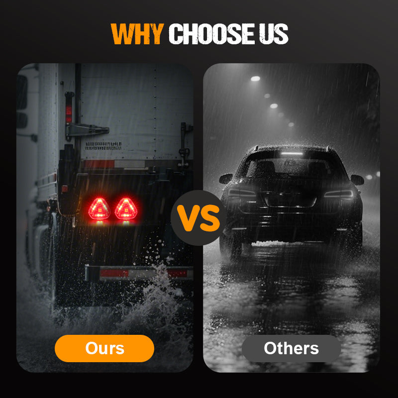 STROBOSKOPLÄGEN MED HÖG SYNLIGHET: Utrustad med ultraljusa flerfärgade LED-chips som erbjuder 6 blinkande mönster inklusive röd-blå blixt, sjufärgsströmmar och mer. Förbättrar sikten bakåt för att förhindra baklucka eller påkörning bakifrån.